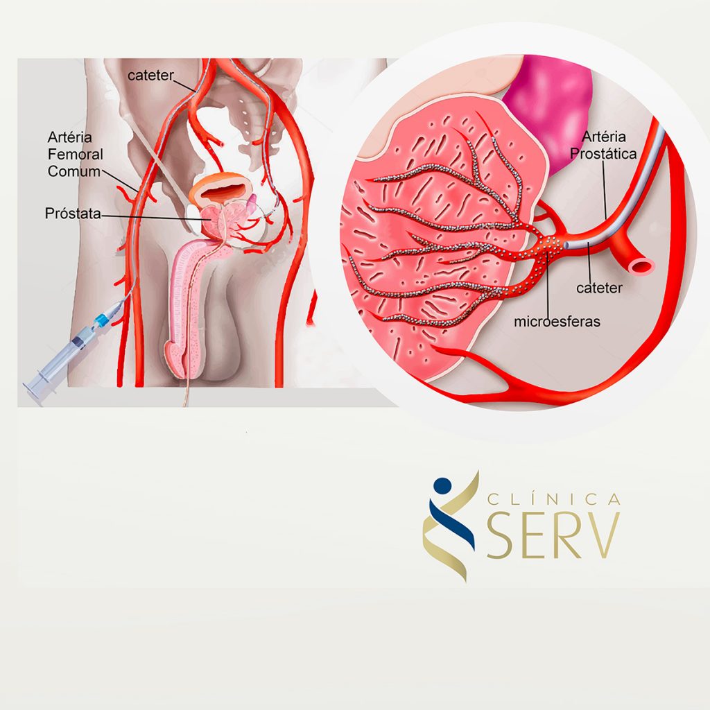 Durante o procedimento, o profissional insere um cateter na artéria femoral, na virilha do paciente. A partir da orientação fluoroscópica (raios-x), ele dirige o cateter no interior das artérias até ser posicionado seletivamente nos ramos arteriais que irrigam a próstata. Com o microcateter nesta posição são injetadas microesferas que tem por objetivo interromper a vascularização da próstata levando à isquemia da próstata e à redução do seu tamanho.